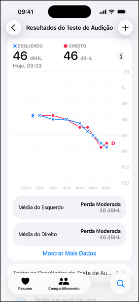 Privado, seguro e fácil de entender. Todos os dados do seu Teste de Audição são armazenados de forma privada e segura no app Saúde do seu aparelho. Você pode refazer o teste quando quiser, monitorar a audição ao longo do tempo, baixar os resultados e ler artigos úteis sobre saúde auditiva.
