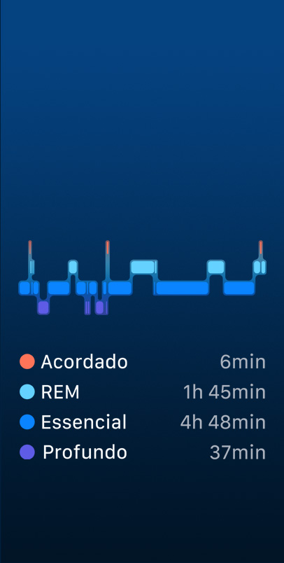 sinais vitais ao longo da noite, como a frequência cardíaca média e respiratória, o oxigênio no sangue2 e a