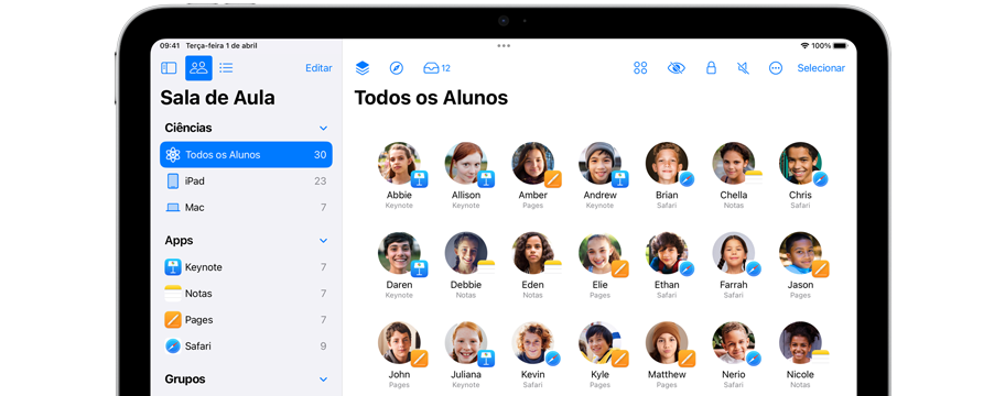 Nosso compromisso com sua família não fica só na sua casa. A Apple também aumenta as possibilidades na escola e oferece apps, como o Sala de Aula e Projeto Escolar, que ajudam professores a manter estudantes aprendendo. Educadores têm acesso aos mesmos controles que você. E a Apple não usa as informações das crianças para criar perfis ou enviar anúncios.