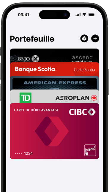 • Portefeuille est une app pratique pour iPhone et Apple Watch qui vous permet de réunir cartes de débit et de crédit, cartes d’embarquement, billets, clés de véhicule et plus encore, en toute sécurité.