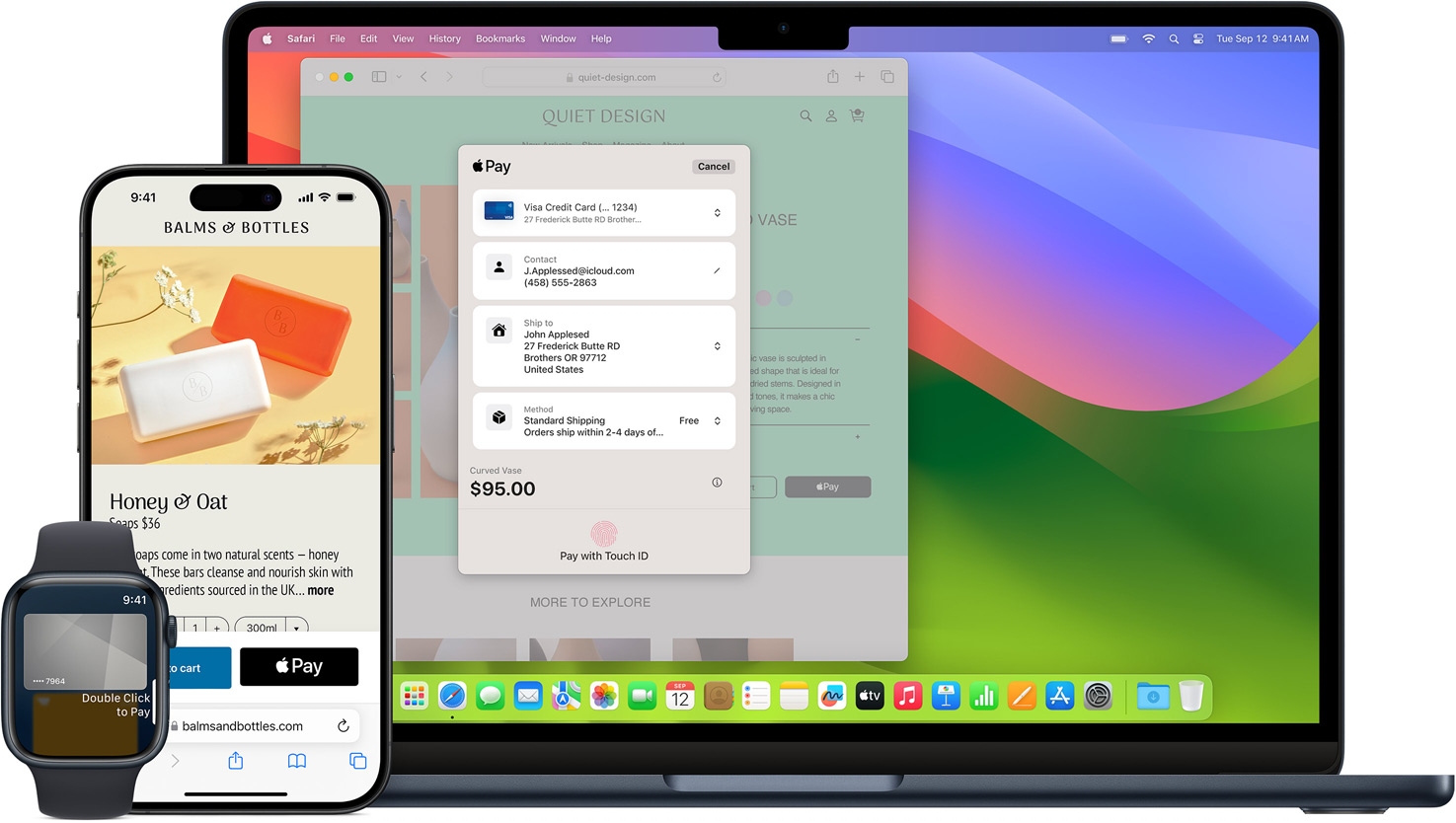 Apple ani tvoje zařízení při placení v prodejnách nepředávají obchodníkům skutečné číslo karty. Při placení na webu v Safari nebo v aplikacích dostane obchodník jenom informace nutné k vyřízení objednávky – tvoje jméno, e-mail a fakturační a dodací adresu.