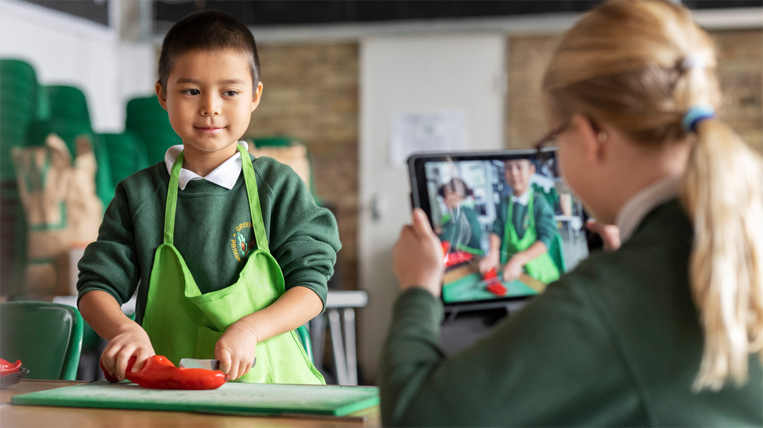 In the kitchen, students use Notes to follow recipes, iMovie to create how-to videos, and Keynote to make nutrition labels. In the garden, to gain understanding of how to grow nutritionally rich produce, students test soil samples and record findings in Numbers. They even FaceTime with farmers across the UK to learn how they grow food in a sustainable way at scale.