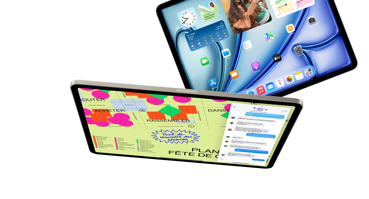 Vous avez le choix entre un iPad Air 11 pouces et un iPad Air 13 pouces, chacun doté d’un superbe écran Liquid Retina haute réso­lution qui donne un souffle inédit à tout ce que vous aimez. Plongez dans une expé­rience visuelle éclatante, réactive et d’une parfaite précision chromatique – en deux tailles.