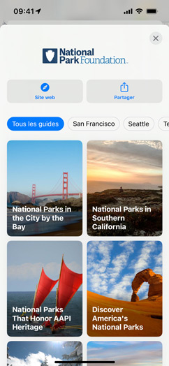 Les guides vous donnent plein d’idées de choses à faire ou à voir dans des villes du monde entier5. Touchez le bouton Explorer des guides pour accéder à une centaine de guides soigneusement élaborés, puis enregistrez ceux qui attirent votre attention. Les guides recommandés s’actualisent automatiquement dès que de nouvelles adresses y sont ajoutées, afin de vous offrir en permanence les toutes dernières recommandations. Vous pouvez aussi vous constituer vos propres guides et en faire profiter vos proches.