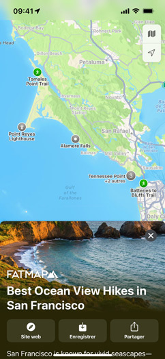 Passez à iOS 15, iPadOS 15 et macOS Monterey pour profiter des dernières fonctionnalités de Plans, y compris le globe interactif, les expériences en 3D pour des villes telles que San Francisco, Los Angeles, New York et Londres, les transports en commun à proximité, et plus encore.