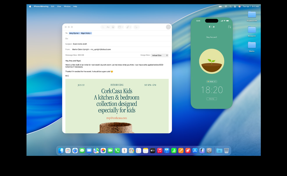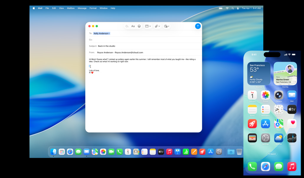Mac, iPhone, iPad, and Apple Watch are amazing on their own. And they’re even more amazing when used together. Thanks to Continuity, your devices work together seamlessly — unlocking a world of powerful features. Start an email on your Mac and finish it on your iPad. Snap a photo on your iPhone and see it appear on your Mac. Or make a call without reaching for your iPhone.1 That’s the magic of Continuity.
