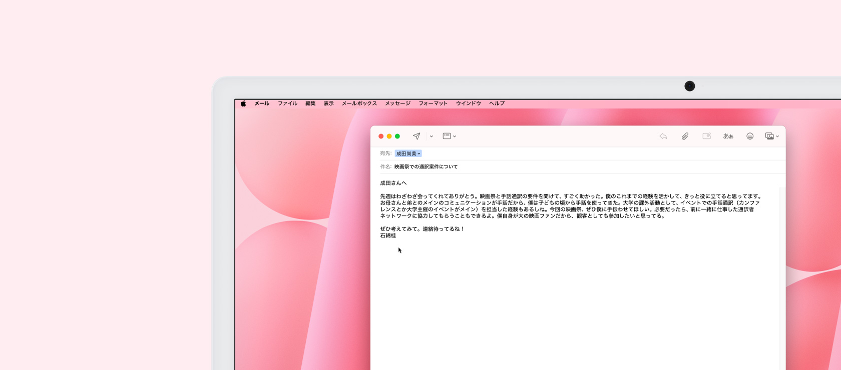 Apple Intelligenceは、あらゆる段階であなたのプライバシーを守れるように設計されています。オンデバイス処理をMacの基盤に組み込むことで、あなたの個人情報を収集することなく認識できるようにしました。