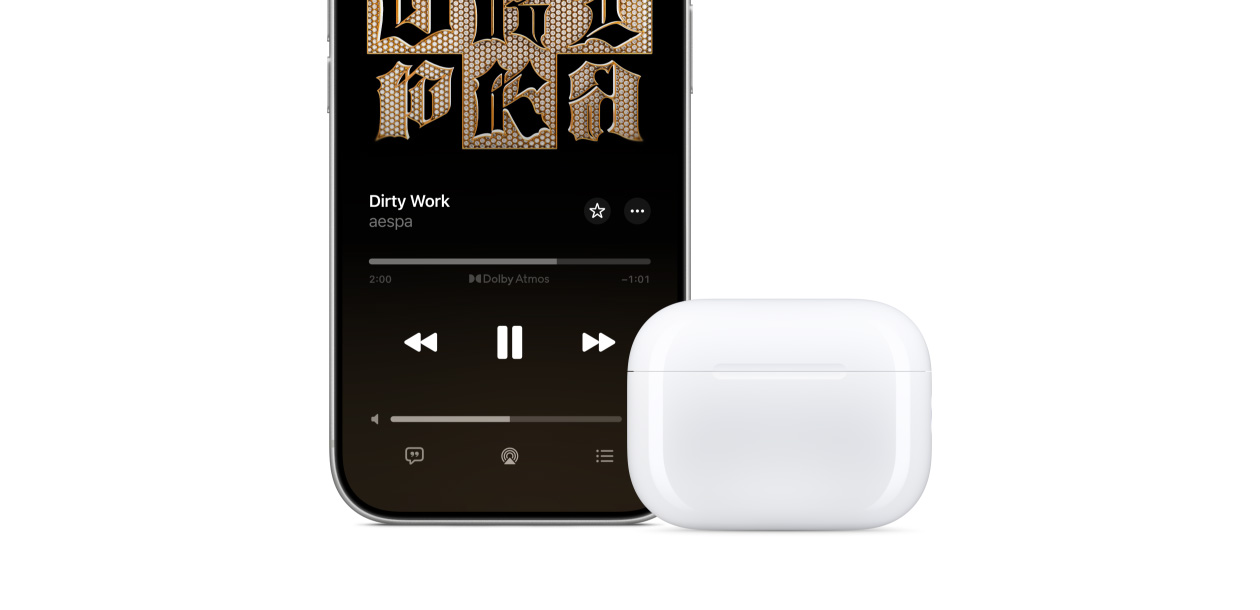 MagSafe 충전 케이스는 내장형 스피커 및 더 강력해진 ‘정밀 탐색’ 등 당신의 AirPods Pro 3가 어디에 있든 그 위치를 파악할 수 있게 해주는 유용한 기능들을 가득 갖추고 있습니다.24 뿐만 아니라 이제 한 번 충전만으로 근무 시간은 물론, 퇴근 후에도 청취 경험을 이어갈 수 있게 해주죠.