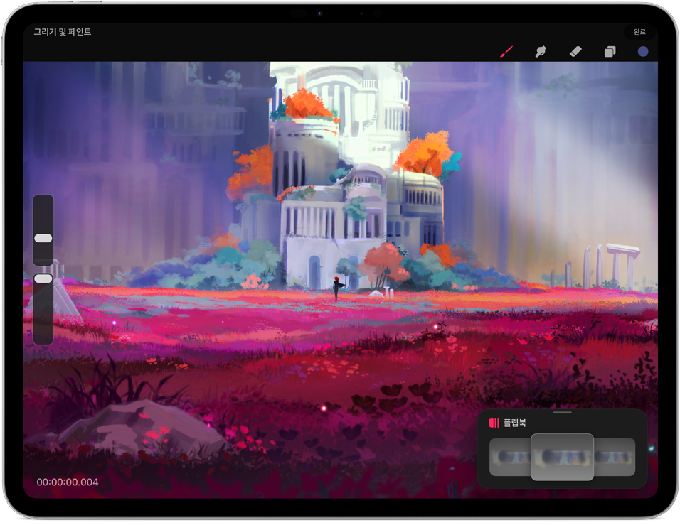 Apple Pencil Pro를 톡톡 두드리는 두 번 탭 제스처로 펜과 지우개 등 여러 도구 간 전환을 빠르게 실행할 수 있습니다.