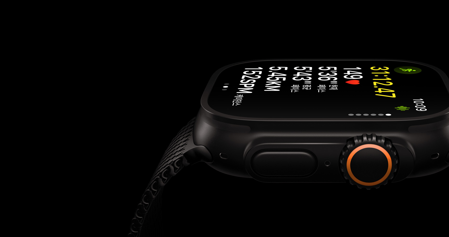 Ultra 3의 하이킹 운동에서는 페이스, 거리, 등반 고도, 소모한 칼로리를 확인할 수 있습니다. 당신이 얼마나 높이 등반했는지 실시간으로 알 수 있고, 운동 후엔 총 등반 고도를 확인할 수 있죠. 하늘 끝까지 올라 볼까요?