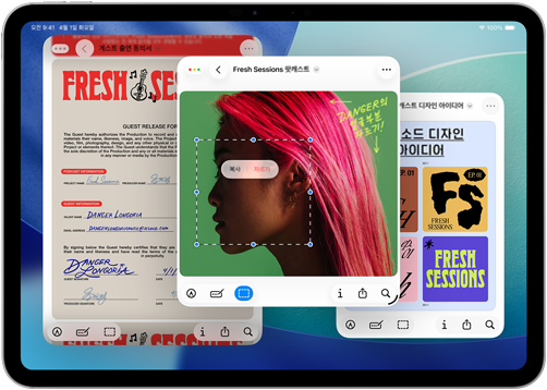 왼쪽이나 오른쪽으로 윈도우를 휙 보내 정렬할 수 있습니다. 이제 iPad 화면을 3분할 또는 4분할로 나눌 수도 있죠.