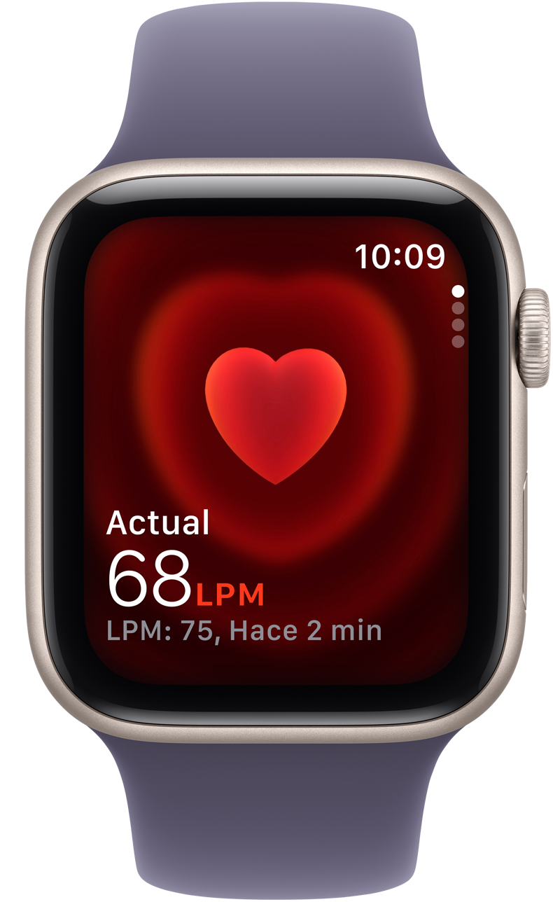 Mide tu frecuencia cardiaca en cualquier momento con la app Frecuencia Cardiaca y recibe notificaciones si está demasiado alta o baja, o si tu ritmo es irregular.11