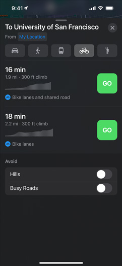 Open Maps and tap your user account photo at the bottom of the screen to see your most used settings — like preferred mode of transit, reported issues, and favorites — all in one place. And when you open Maps on your devices or on your dashboard with CarPlay, it displays the places you visit most — so you’re always just a tap away from home, work, the gym, your kid’s school, the nearest gas station, or your favorite restaurant.