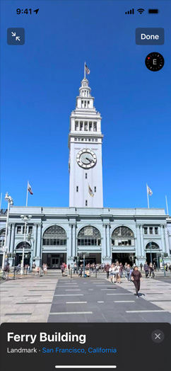 Get a whole new perspective on select major metro areas with photo‑realistic, immersive 3D views. Move your iPhone or iPad through space to experience a city from above, or take a closer look at cities and their landmarks in high resolution as you zoom, pan, tilt, and rotate.5 It’s exploration elevated.