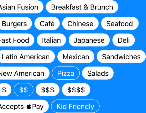 It’s quick and easy to find just what you’re looking for in Maps. Use ultra-targeted filters to search for restaurants by cuisine, price range, and whether they offer takeout. Or choose to see only places that are open right now. Want to broaden your search? Just move the map, and your search results update automatically. Want something closer to home? Tap Nearby to find local places in categories like Restaurants, Gas Stations, Coffee, Hotels, Bars, Fast Food, Groceries, and Shopping Centers. Locations are displayed on the map with colorful badges, making it even easier to pinpoint your picks.