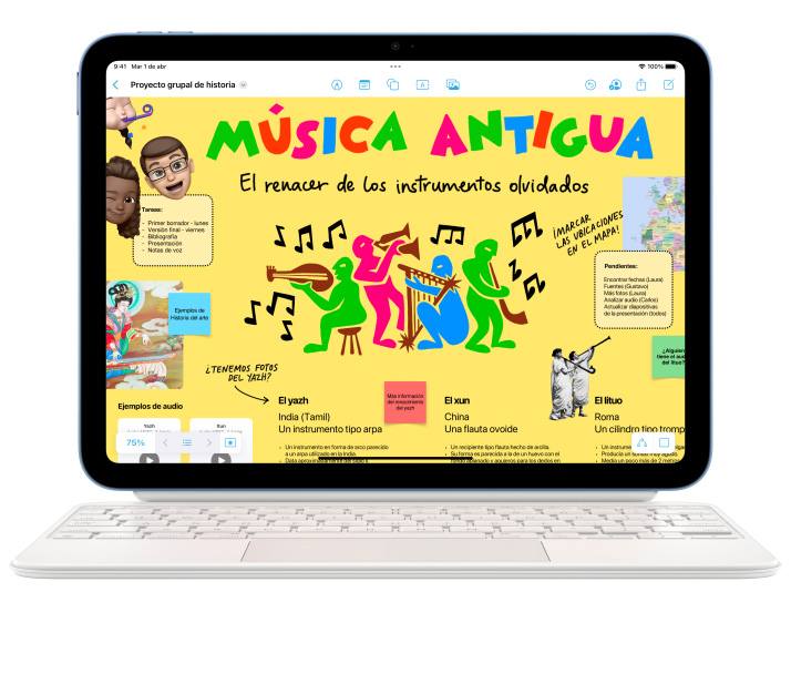 Sácale punta a tu creatividad con el Apple Pencil y el Magic Keyboard Folio. Protege tus obras de arte por ambos lados con un Smart Folio. Y usa el puerto USB-C para conectar discos duros, bases dock, monitores y mucho más.2