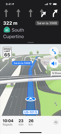 CarPlay lleva el poder y la sencillez de Mapas al volante. Puede hacerte sugerencias inteligentes basándose en datos que almacenas en tu dispositivo, como direcciones que aparecen en tus emails, mensajes de texto, contactos y calendarios. Y gracias al gran nivel de detalle de los mapas, las indicaciones de voz paso a paso y las experiencias inmersivas en 3D, ahora es más fácil que nunca llegar a tu destino.