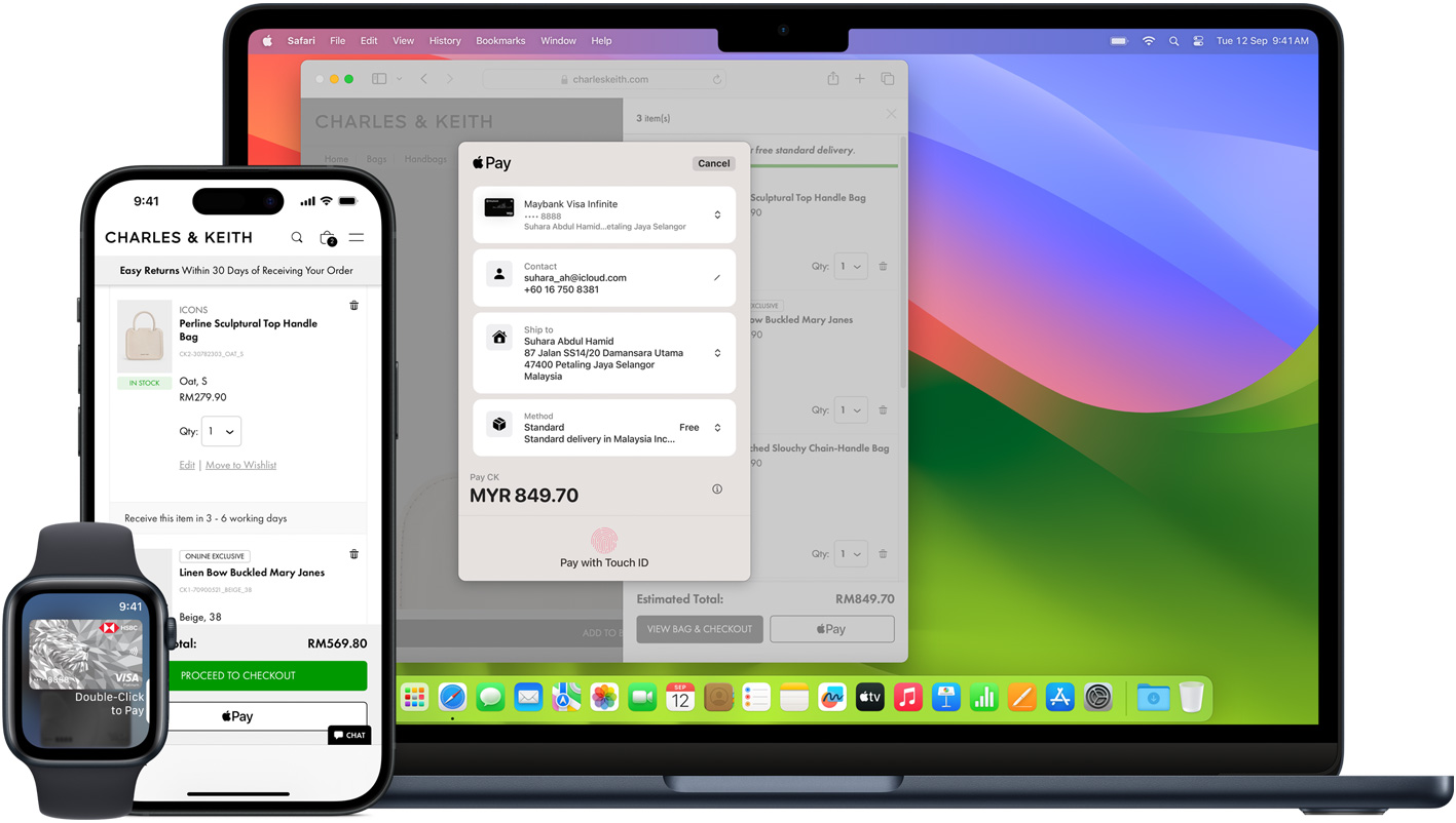 In apps and online. Use Apple Pay for purchases in Safari on your iPhone, iPad or Mac. You can skip the lengthy checkout forms and pay with just a touch or a glance.