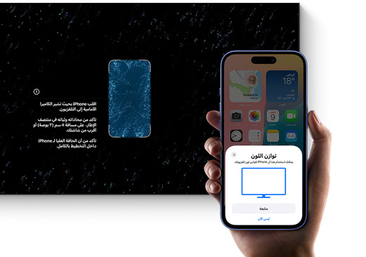 توازن مثالي. يعمل Apple TV 4K مع iPhone على ضبط الألوان تلقائياً لتظهر بأفضل صورة. كل ما عليك هو توجيه كاميرا iPhone نحو شاشة التلفزيون مرة واحدة، والاسترخاء لمشاهدة برامجك وأفلامك بالروعة التي تستحق أن تظهر بها.