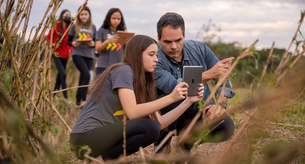 Obecnie uczniowie z zapałem projektują tkaniny w apce Tayasui Sketches School. Śledzą fascynujący cykl życia roślin w szkolnym ogrodzie za pomocą aplikacji Aparat i Clips. A emocje odkrywają dzięki tworzeniu własnej muzyki w GarageBand.