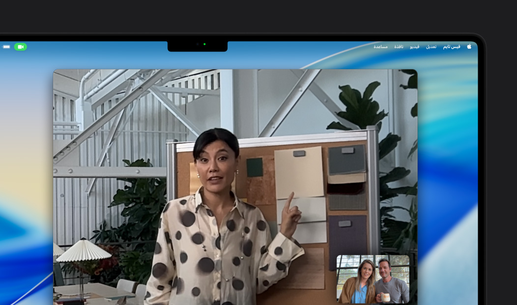 خلال مكالمات الفيديو، يبقيك نمط "في الوسط" في قلب الإطار حتى لو تحرّكت أو انضم إليك آخرون.