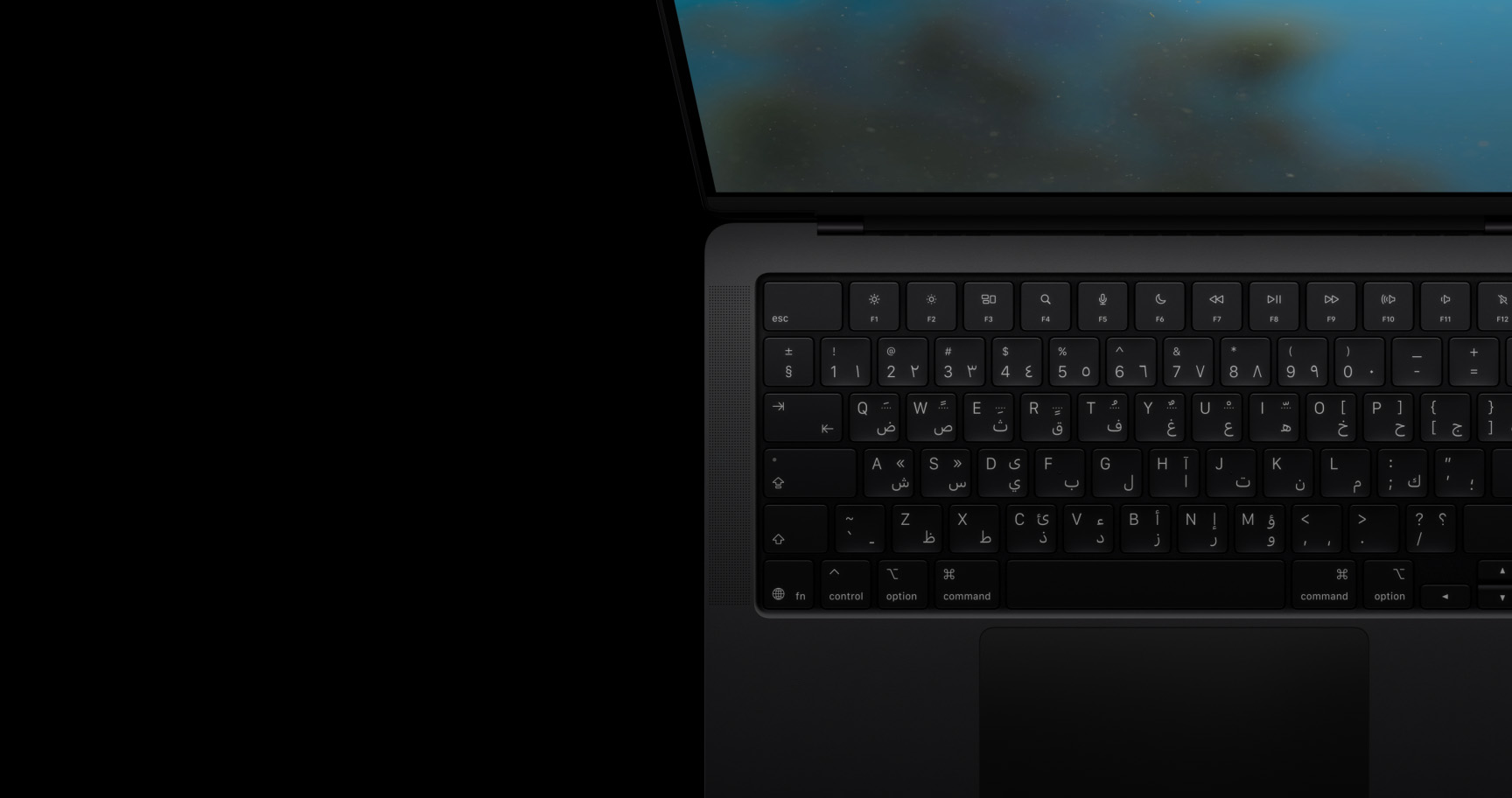 المقاسات. يتوفر موديل 14 إنش بشريحة M5 أو M4 Pro أو M4 Max. ويتوفر موديل 16 إنش بشريحة M4 Pro أو M4 Max.