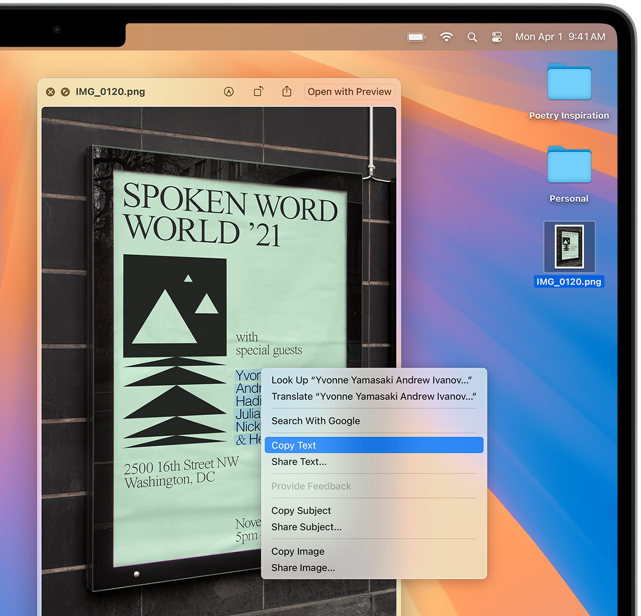 Quickly learn more about landmarks, works of art, breeds of dogs, and more with only a photo or an image you find online. And easily lift the subject of an image from Safari, remove its background, and paste it into Messages, Notes, or other apps.