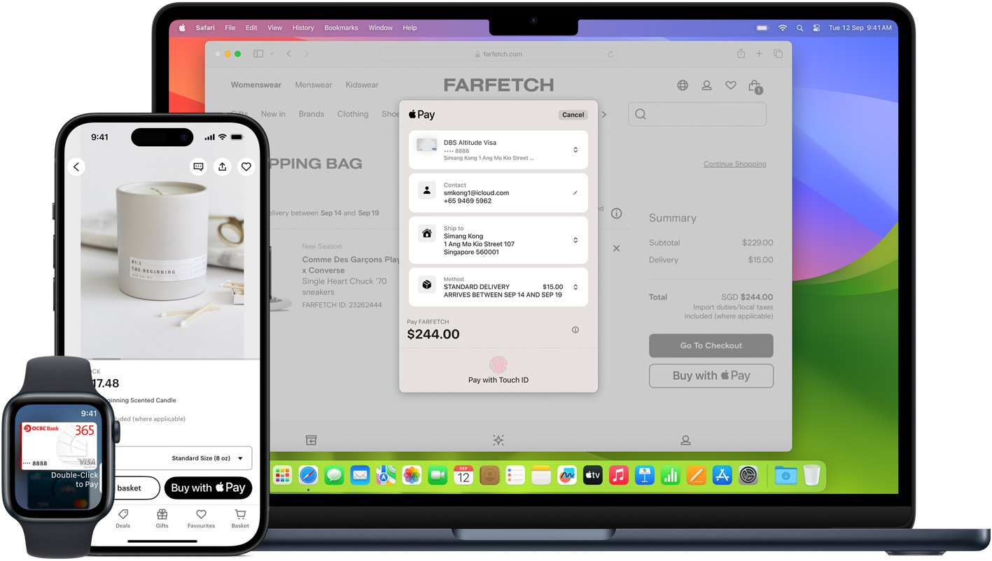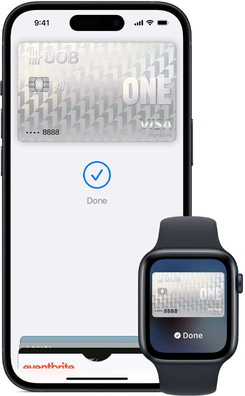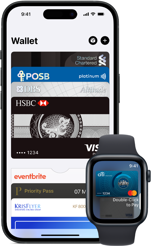 Set up in seconds. Directly on your iPhone. Apple Pay is built into iPhone, Apple Watch, Mac and iPad. Start by adding your credit or debit card to the Wallet app on your iPhone, and you’ll have the option to add it to your other devices in one easy step. When you want to pay, just double-click, tap and you’re set. You still get your card’s rewards and benefits — so you won’t miss out on any hard-earned points or miles.