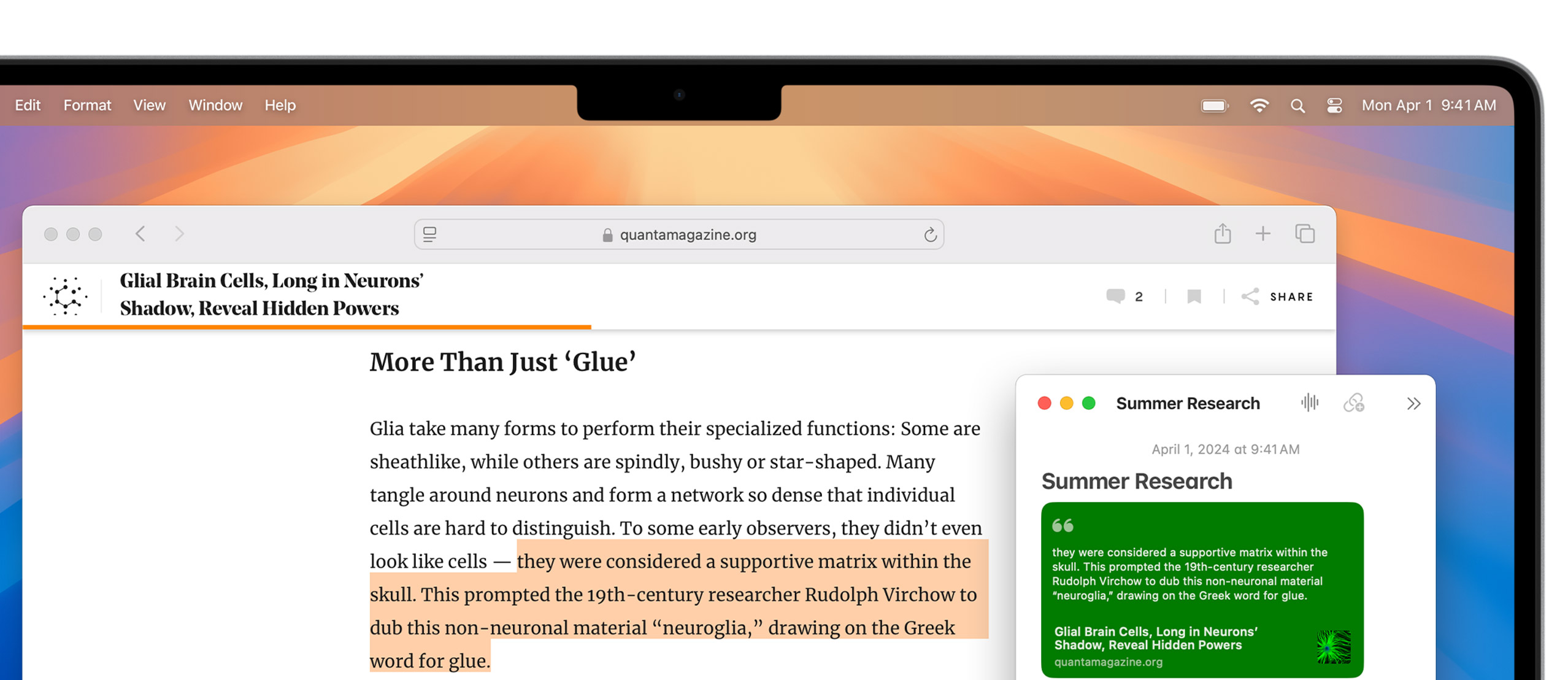 Safari ทำงานได้แบบราบรื่นไม่มีสะดุด พร้อมซิงค์รหัสผ่าน ที่คั่นหน้า ประวัติการเข้าชม แถบต่างๆ ของคุณ และอีกมากมายไปยัง Mac, iPad, iPhone และ Apple Watch และเมื่ออุปกรณ์ Mac, iOS หรือ iPadOS ของคุณอยู่ใกล้ๆ กัน ทั้งหมดจะสามารถส่งต่อสิ่งที่คุณทำอยู่ใน Safari ไปยังอีกเครื่องได้โดยอัตโนมัติด้วย Handoff คุณยังสามารถคัดลอกรูปภาพ วิดีโอ หรือข้อความจาก Safari บน iPhone หรือ iPad ของคุณ แล้วนำไปวางบนแอปอื่นบน Mac ที่อยู่ใกล้ๆ หรือจะทำจาก Mac ไปยัง iPhone หรือ iPad ก็ได้