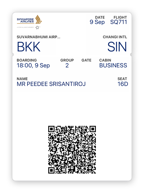 หลังจากเพิ่มบัตรผ่านขึ้นเครื่องของ