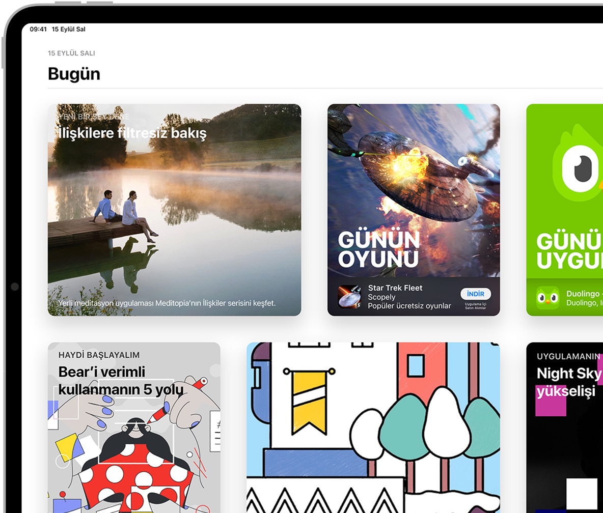 App Store, on yılı aşkın bir süredir uygulamaları keşfetmek ve indirmek için güvenli bir yer olmaya devam ediyor. Ama o bundan çok daha fazlası. App Store aynı zamanda size harika deneyimler sunmaya odaklanan inovatif bir platform. Ve bu deneyimlerin büyük bir bölümü, sunduğumuz uygulamaların gizlilik, güvenlik ve içerik açısından en yüksek standartları karşılamasını sağlamaya dayanıyor. Her şey, bir sonraki favori uygulamanızı içiniz rahat bir şekilde keşfetmeniz için tasarlandı.