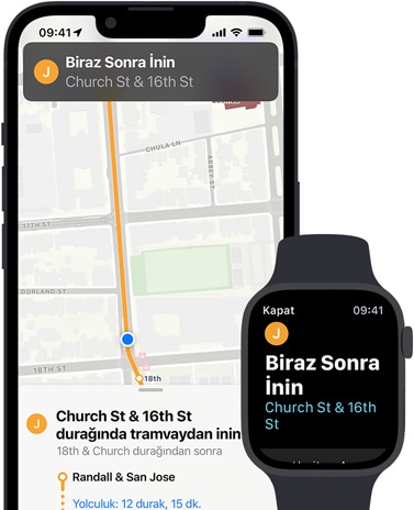 Bir yerden bir yere giderken, kullandığınız tüm Apple aygıtlarında kusursuz ve kesintisiz bir deneyimin tadını çıkarın. Apple Watch’taki Dokunsal Geri Bildirim özelliği küçük bir dokunuşla gitmeniz gereken doğru yönü bildiriyor. Böylece sürekli iPhone’unuzu çıkarmanıza gerek kalmıyor. Mac’inizdeki takvim uyarıları, çalışmayı bırakıp yola çıkmanız gerektiğinde size haber veriyor. Ve Harita size doğru zamanda doğru bilgiyi sunabilmek için Siri, Spotlight, Mesajlar ve Hava Durumu ile otomatik olarak eşzamanlanıyor.