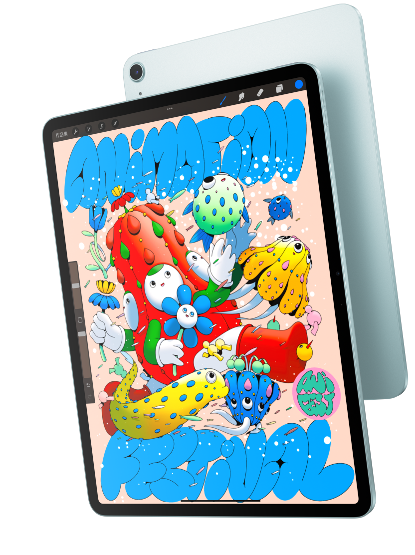 iPad Air 有 11 吋與 13 吋任你選擇,均配備絢麗的高解析度 Liquid Retina 顯示器,無論想用來做什麼,都能躍然眼前生動呈現。兩種尺寸的顯示器均明亮動人、反應靈敏且色彩精準,為你帶來出色的觀看體驗。