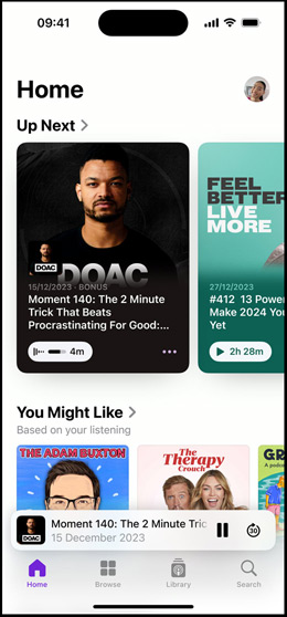 • Apple Podcasts is already installed on all your favourite Apple devices. You can also listen with CarPlay, and on a variety of smart speakers and selected car systems.