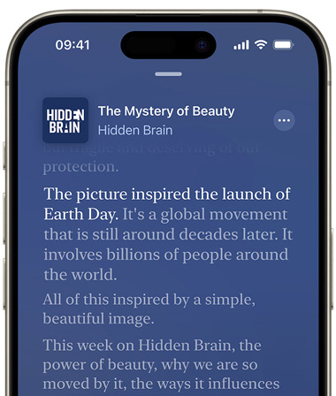 All your Apple devices come ready to play every podcast on the app — so whether you’re driving or jogging or cooking, you can keep the conversation going. You can even download shows to your Apple Podcasts library and listen offline.