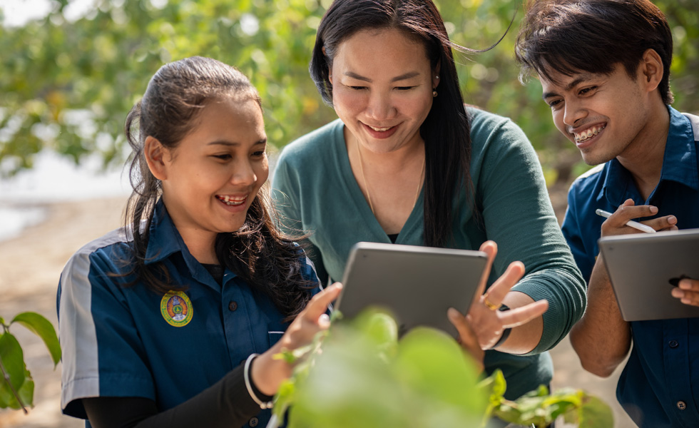 Là một nhà giáo vẫn đứng trên giảng đường, việc giới thiệu những phương pháp giảng dạy mới sử dụng công nghệ là một trong những phần thú vị nhất trong công việc của Tiến Sĩ Chatmaneerungcharoen. “Ở Phuket, chúng tôi có truyền thống lâu đời về việc hỗ trợ nền giáo dục thân thiện với thiên nhiên. Chúng tôi đi ra ngoài trời, hoặc mang thiên nhiên vào lớp học”, bà chia sẻ. Trong một buổi học, các giáo sinh đi đến khu rừng ngập mặn lân cận để chụp ảnh và quay video bằng Camera và Padlet trên iPad, sau đó kết hợp những nội dung này vào giáo án để tạo ra trải nghiệm học tập nhóm theo mô hình dự án, mang tinh thần cộng tác và bản địa hóa đến cho học sinh.
